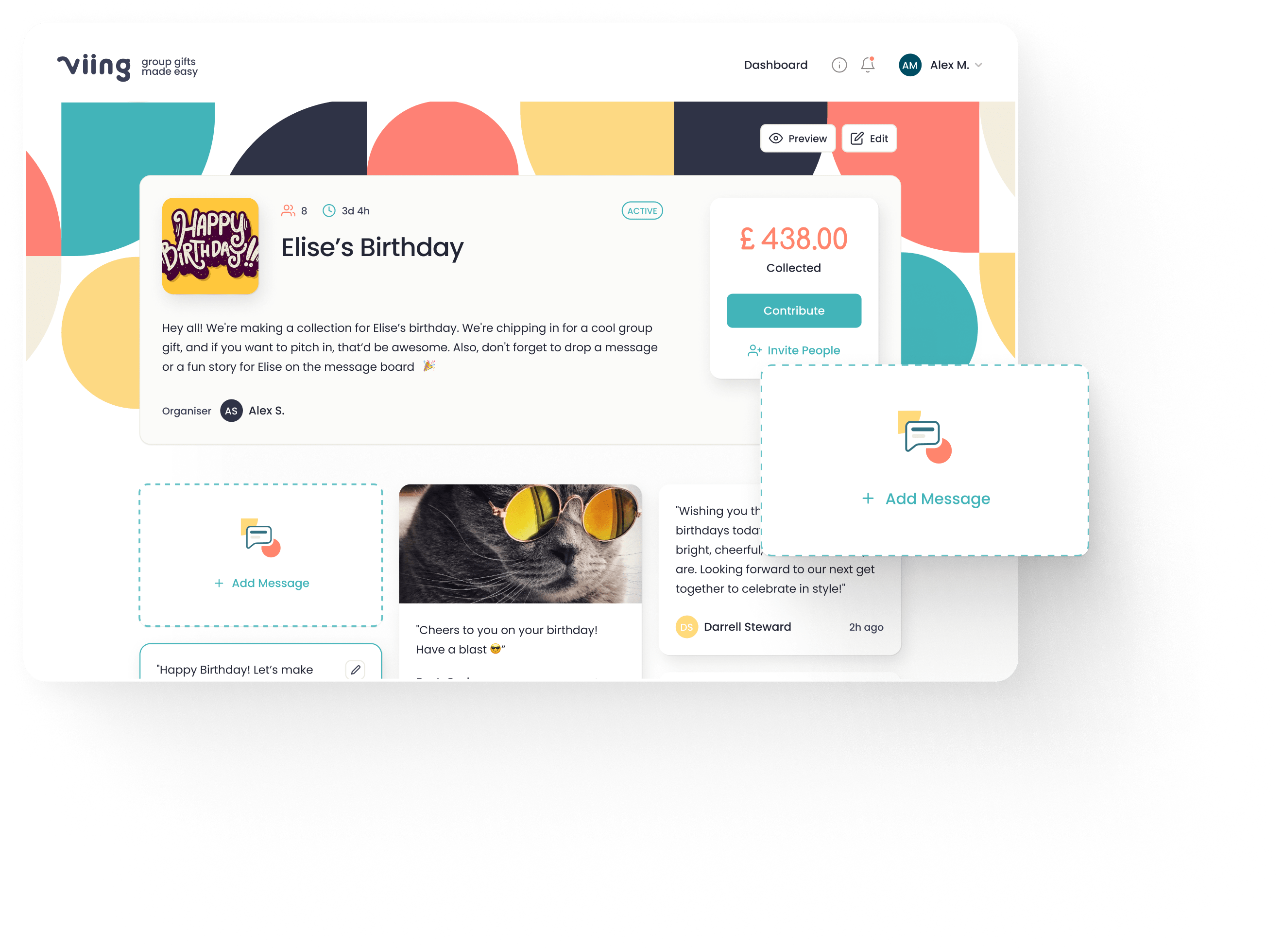 Every colleague can contribute online, add a personal message, or upload a photo or video — all in one simple collection